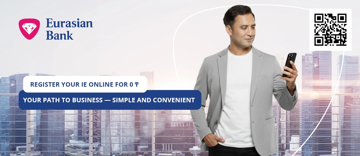 Register IE online in the Eurasian Bank mobile app – quickly, conveniently and without visiting government agencies. Get access to all the tools for doing business in one place.