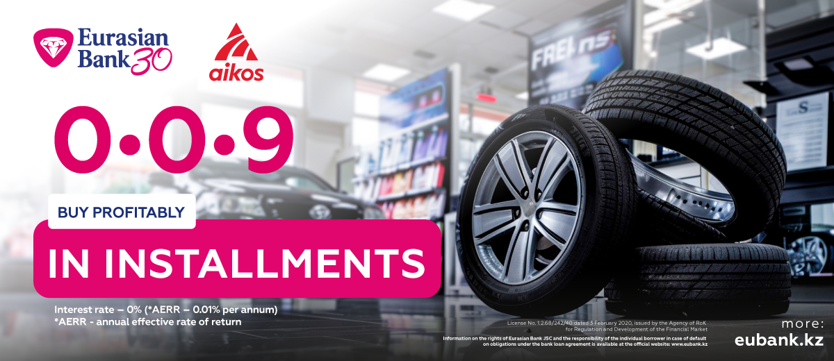 Eurasian Bank together with Aikos, the largest tire product supplier in Kazakhstan, are launching a profitable promotion!