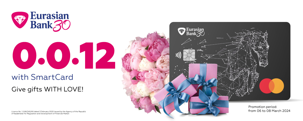 In honor of the International Women’s Day, Eurasian Bank launches the Profitable Purchases in 0-0-12 Installments on a SmartCard Credit Card Promotion! For only three days from 6 to 8 March 2024 (inclusive), make purchases for yourself and your loved ones in installments of up to 12 months with no overpayments and Bank fees!