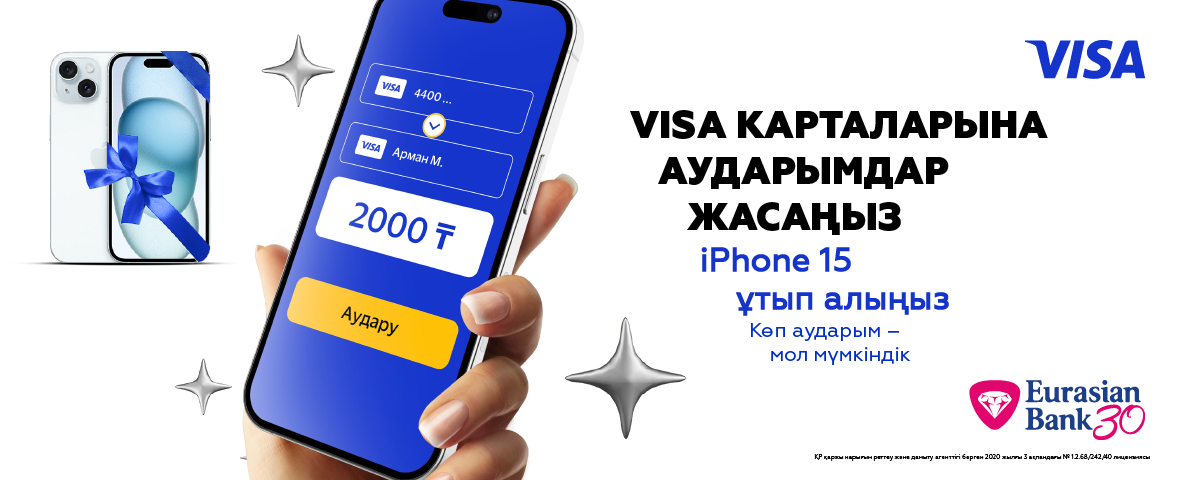 Енді біздің ыңғайлы және қауіпсіз қызметіміздің көмегімен күнделікті ақша аударымдарын жасай отырып, сіз өз жақындарыңыз бен достарыңызға жәрдемдесіп қана қоймай, шынымен құнды сыйлық ала аласыз. «Visa карталарына аударымдар үшін iPhone 15 сыйға береміз!» науқанына қосылыңыз.