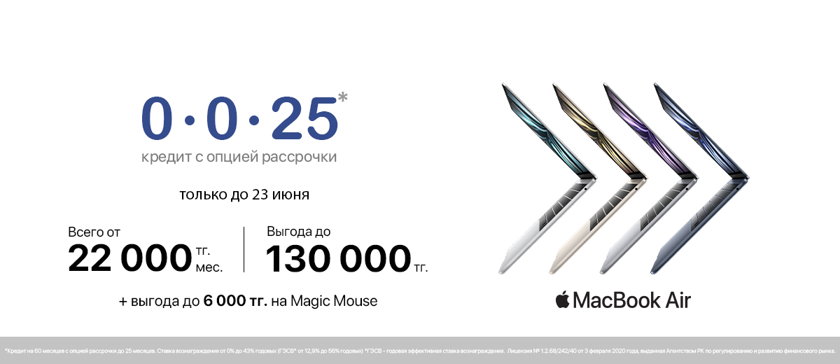 *С 3 июня по 23 июня 2024 года приобретайте любимые гаджеты в кредит на 60 месяцев с опцией рассрочки на 25 месяцев!