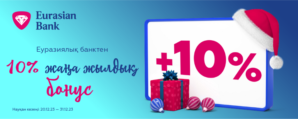 Жаңа жыл қарсаңында 2023 жылғы 20-31 желтоқсан аралығында Еуразиялық банк өз клиенттеріне 10% бонус сыйлайды!