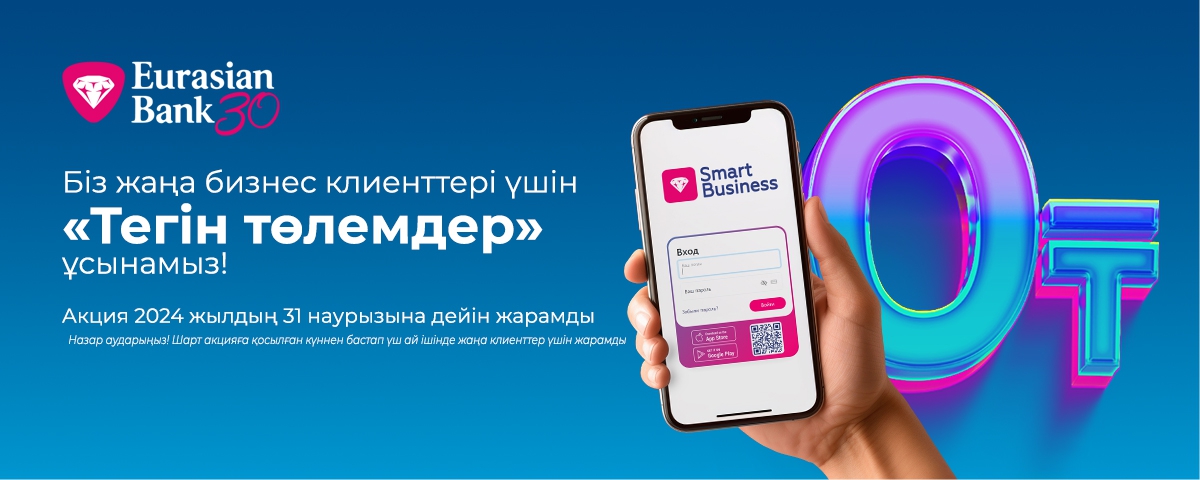 Еуразиялық банк жаңа бизнес-клиенттер үшін «Тегін төлемдер» акциясын іске қосты, оларға қолжетімді болады: