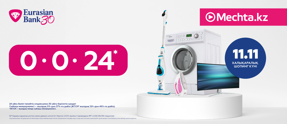 2024 жылғы 1 қарашадан 30 қарашаға дейін Еуразиялық банк Мечта дүкендер желісімен бірлесіп тиімді ұсыныстарды іске қосады! * Заманауи техниканы 24 айға дейін бөліп төлейтін мүмкіндігі бар 60 айға кредитке сатып алыңыз!