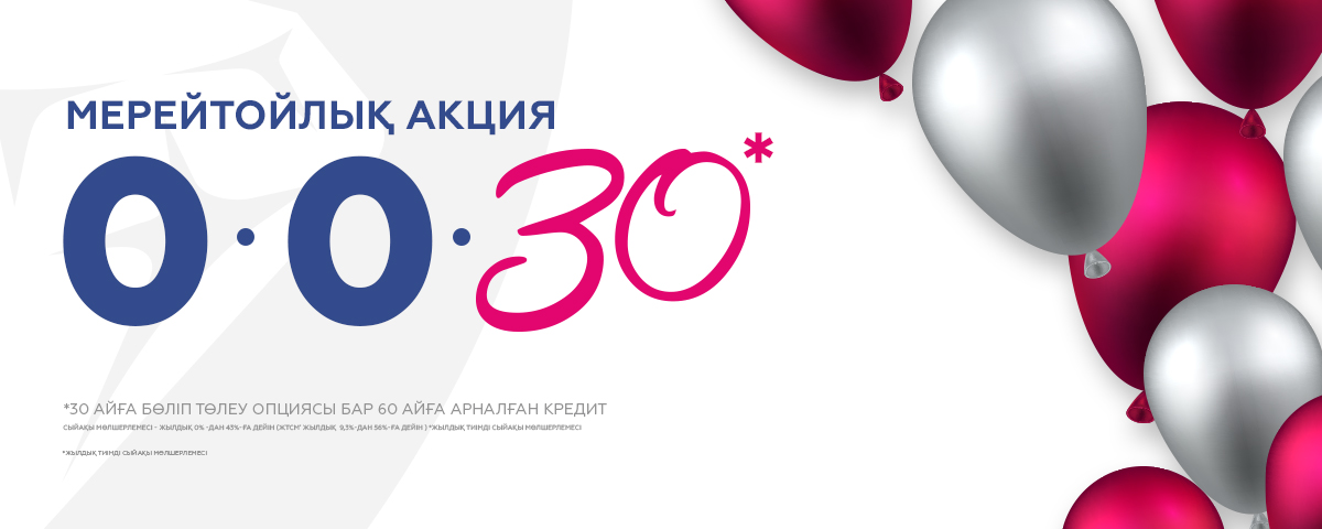 0-0-30* акциясымен бірге сіз тауарларды 30 айға дейін бөліп төлеу опциясымен 60 айға кредитке сатып аласыз.