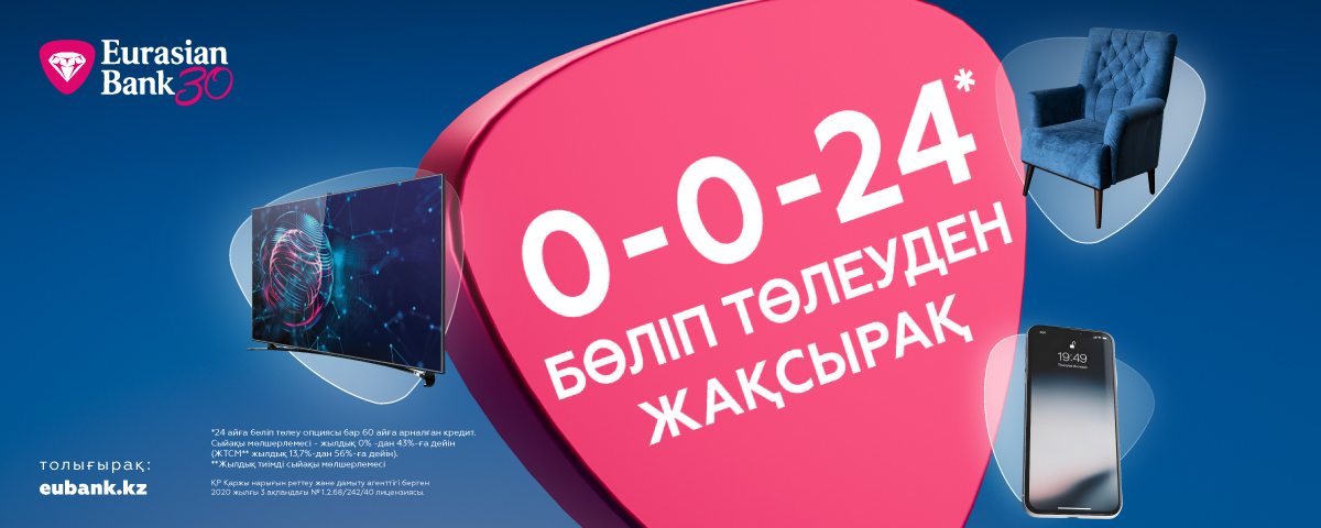 * Еуразиялық банктің науқанымен сіз қажетті сатып алуларды 24 айға бөліп төлеу мүмкіндігі бар 60 айға кредитке сатып ала аласыз!