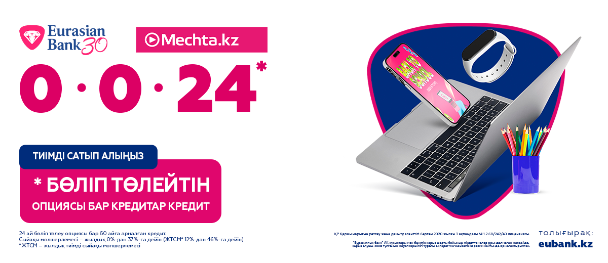 *2024 жылдың 1 қыркүйегінен 30 қыркүйегіне дейін Мечта дүкендерінен 24 айға дейін бөліп төлеу мүмкіндігімен 60 айға кредит рәсімдеп, қажетті затыңызды сатып алыңыз!