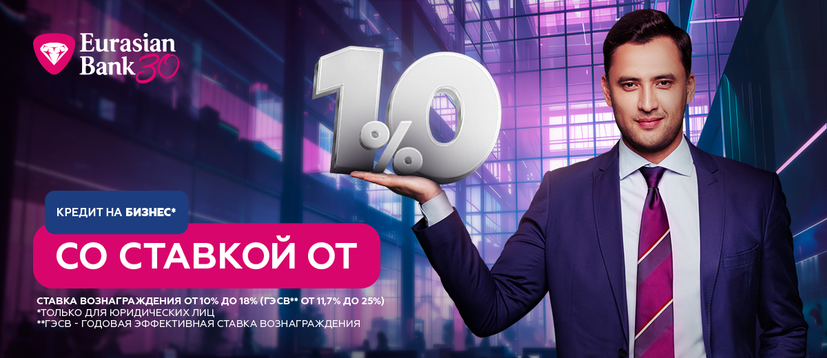 Евразийский банк рад объявить о запуске акции по кредитованию «С любовью, Евразийский» для поддержки клиентов малого и среднего бизнеса.