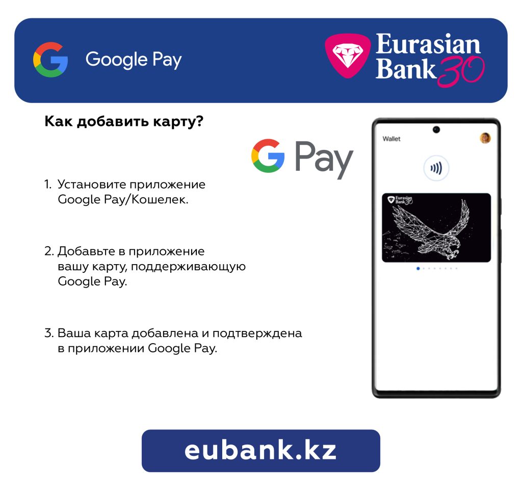 Оплачивайте покупки картой Mastercard или Visa Евразийского банка с помощью Google Pay и получайте дополнительно до 3% бонусов!