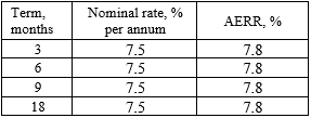 Interest rates in tenge, applied at extension and conversion by cancelled deposit types, that are no longer opened — Kazyna Premium (all subtypes, including Type No. 1 and Type 2), VIP (Package No. 1), Eurasian Children’s, Children’s, Eurasian, Eurasian VIP, Eurasian Saving, Eurasian Pension, Pension, Personal Account, Kazyna (including Package No. 1 and Package No.2):