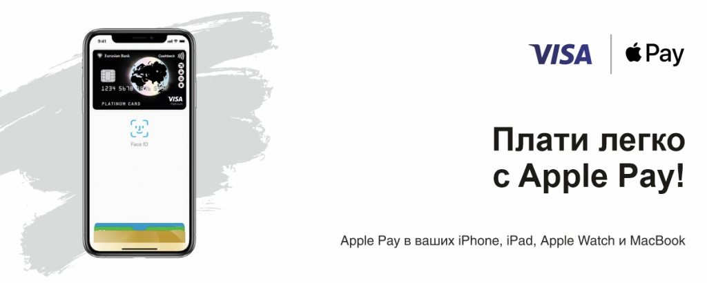 С 15 сентября держатели карт Visa, выпущенных Евразийским банком, получили возможность пользоваться Apple Pay – легким, безопасным и личным платежным инструментом, который полностью меняет сферу мобильных платежей, предлагая скорость и удобство. Пользователи iPhone, Apple Watch, iPad и Mac теперь с легкостью могут совершать покупки как в магазинах, так и в приложениях или на сайтах благодаря Apple Pay.