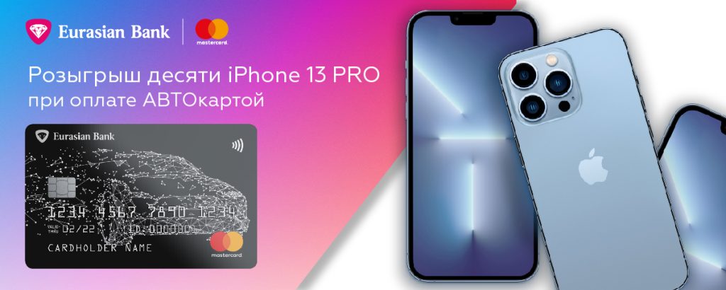 Евразийский банк запускает акцию «iPhone 13 PRO за Автокарту» для всех клиентов-держателей Автокарты.