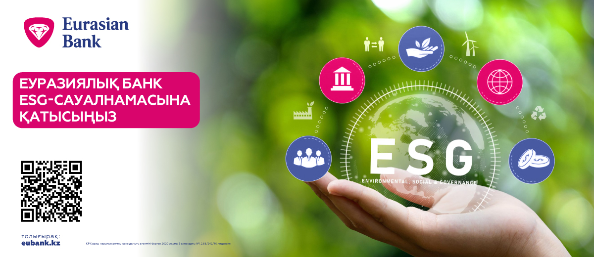 Еуразиялық банк 2025 жылға арналған Тұрақты даму туралы есепті дайындауға кірісті және ESG (экологиялық, әлеуметтік және корпоративтік жауапкершілік) саласындағы ең маңызды тақырыптарды анықтау мақсатында мүдделі тараптар арасында сауалнама жүргізуде.