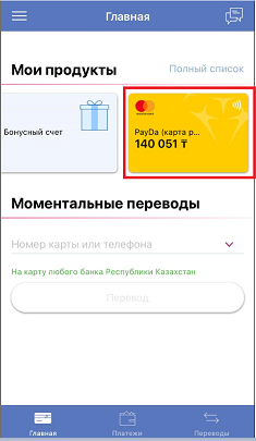 1. Откройте приложение Smartbank и авторизуйтесь с помощью отпечатка или пасс-кода. На главной странице в разделе «Мои продукты» выберите продукт PayDa.
