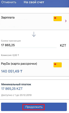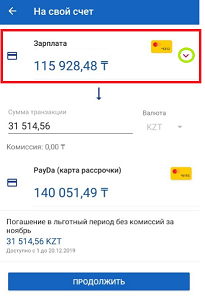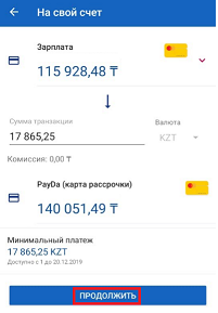 4. После того, как вы выбрали счет, с которого хотите оплатить платеж, необходимо подтвердить платеж, кликнув «Продолжить».