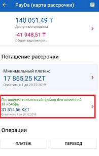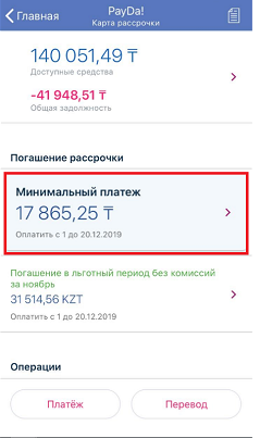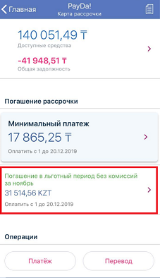 2. После того, как вы нажали на PayDa у вас есть выбор, оплатить «Минимальный платеж» или «Льготный платеж». В данной инструкции мы рассматриваем способ оплаты льготного платежа. Выберите «Льготный платеж».