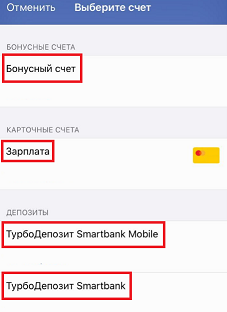 3. Затем выберите счет для оплаты.