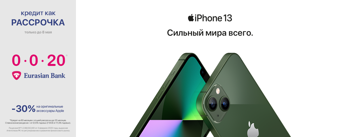 Евразийский банк запускает акцию на кредитование с опцией рассрочки совместно с официальными реселлерами продукции Apple в Казахстане iPoint, Sulpak, Technodom, Mechta, Evrika, Fora и DNS!