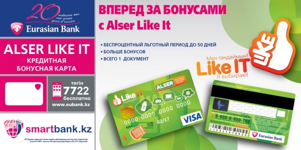 Помимо бонусов, получаемых по бонусной карте Like IT за покупки в сети магазинов ALSER и партнеров, с кредитной картой ALSER Like IT Клиент может заработать еще больше бонусов!