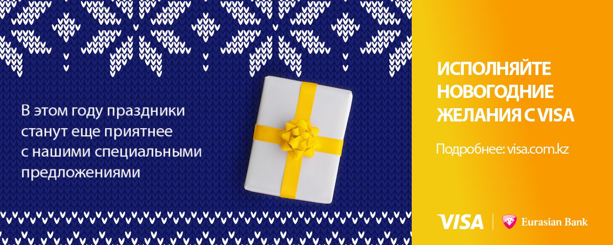 Устройте себе выгодный новогодний шопинг: покупайте продукты, товары для дома, спорта, туризма, а также книги, подарки для детей, косметику и духи онлайн со скидкой и бонусами вместе с Visa от Евразийского банка!