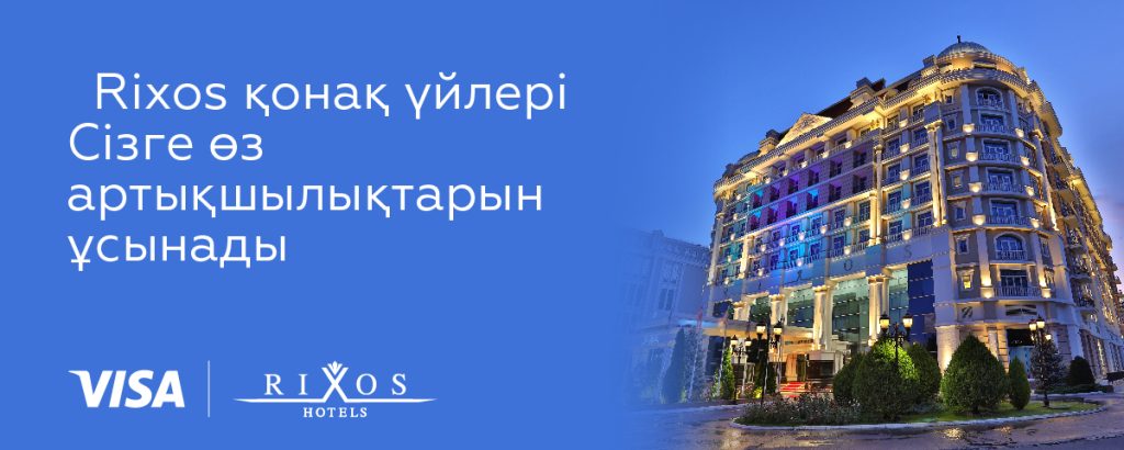 – Rixos отельдер желісі және Visa тұруға жеңілдіктерін Visa Gold, Visa Platinum және Visa Infinite карталары иелеріне арнайы ұсынады;