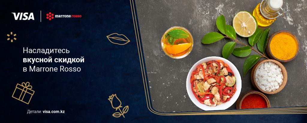 Оплачивайте счет картой Visa Platinum или Infinite в ресторанах Marrone Rosso и получите теплый салат со скидкой 30% либо чай «нарядный» на выбор.