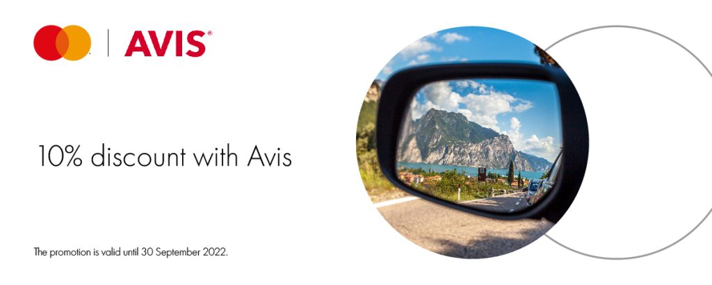 Up to 10% discount when booking a car rental on the Avis website with Mastercard cards