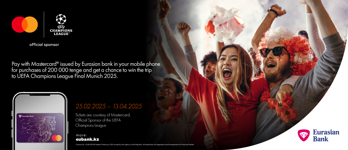 Eurasian Bank and Mastercard invite all football fans to participate in the Great Football with Mastercard Promotion and win a unique tour to the historic final of the tournament, which decides the fate of Europe’s main football trophy.