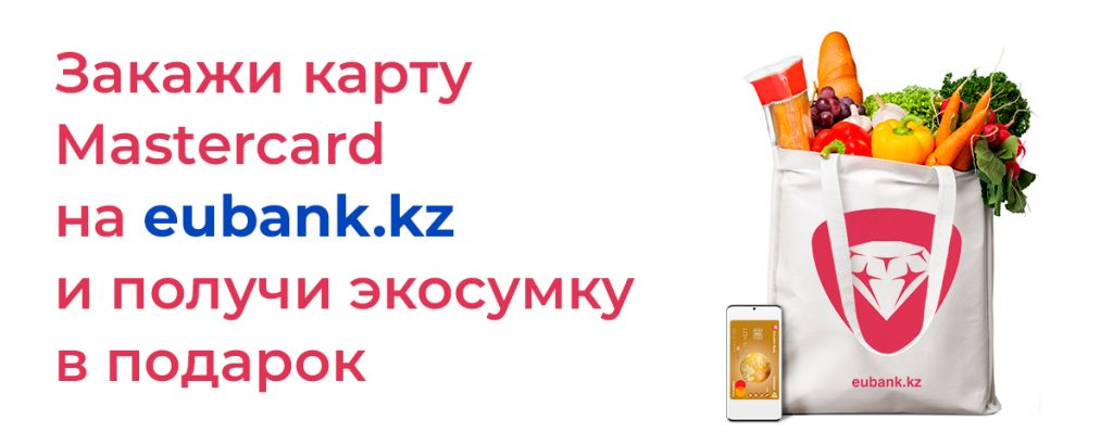 When ordering a Mastercard card on eubank.kz, you get an eco-bag as a gift. It will be delivered to you along with the card.