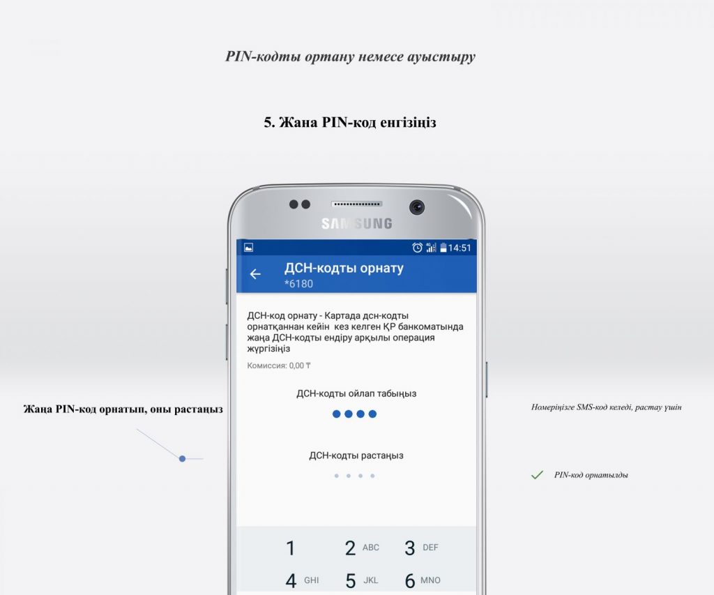 Егер сіз Smartbank-тің көмегімен PIN-кодты жаңа картаға орната алмай тұрсаңыз, келесі нөмірлерге қоңырау шалу арқылы ДСН-кодты орнатуды пайдалануға кеңес береміз: