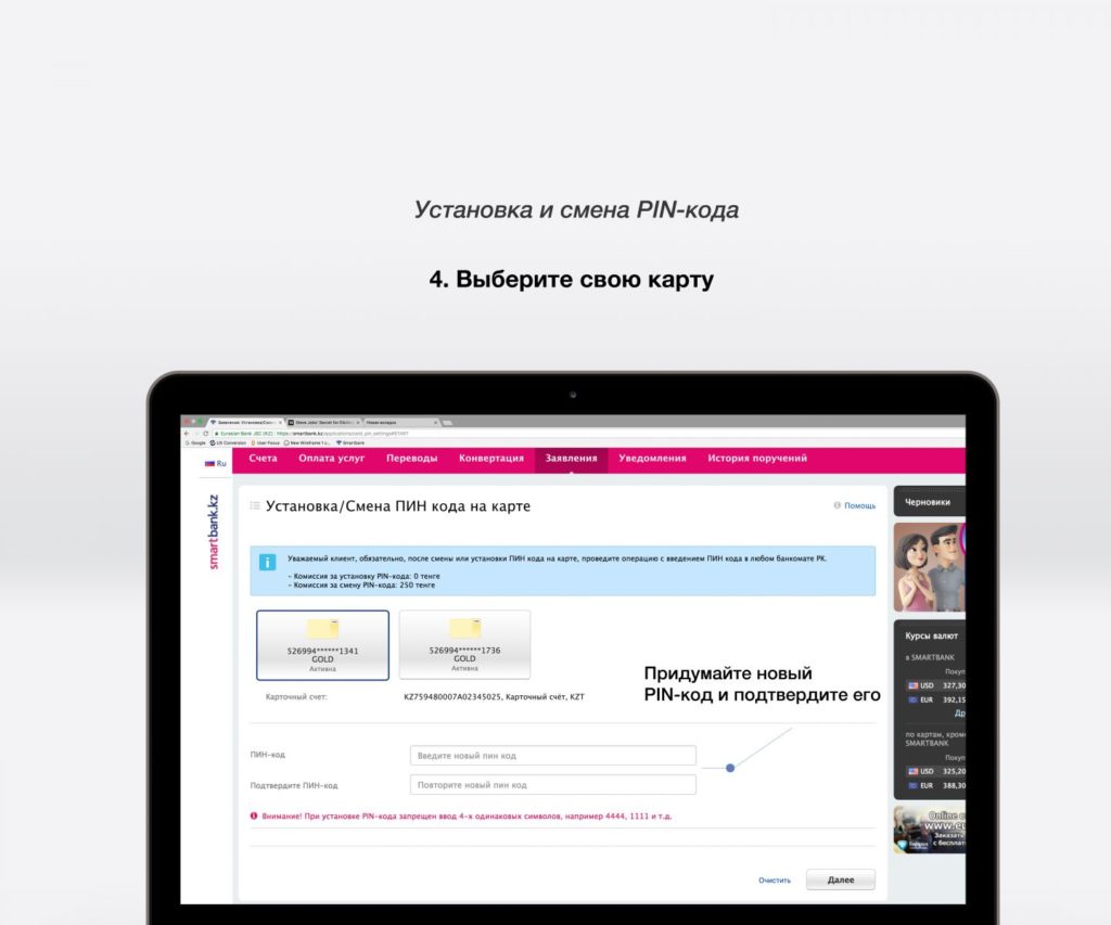 Жаңа картаға PIN-кодты орнату үшін келесі деректерді енгізу қажет: