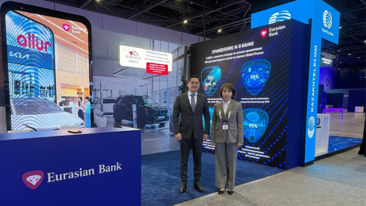 Еуразиялық банк стендінде басқарма төрағасы Ляззат Сатиева екі жылдан астам уақыт бойы банк клиенттерді қорғау, қызметтерді дербестендіру және процестерді оңайлату технологияларын енгізе отырып, жасанды интеллект бағытын белсенді дамытып келе жатқанын айтты. Ұлттық банкімен бірлескен жұмыс барысында күдікті операцияларды бақылап, оларды нақты уақыт режимінде бұғаттауға мүмкіндік беретін антифрод жүйелері енгізілді. Осының арқасында 307 млн теңге сомасына 2,5 мыңға жуық алаяқтық операциялардың алдын алынды.
