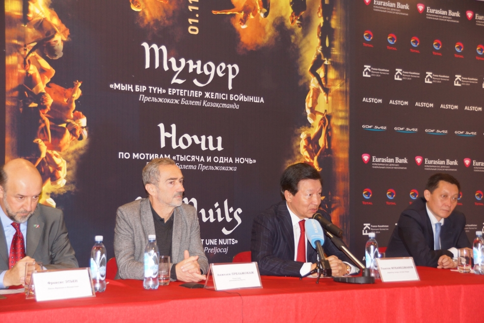 06.11.2013, — Алматы. Евразийский Банк подарил казахстанцам возможность познакомиться с новым творением всемирно известного хореографа Анжелена Прельжокажа. В рамках «Сезона Франции в Казахстанe 2013», «Балет Прельжокажа» уже выступил в Астане и теперь покажет в Алматы свой новый спектакль «Ночи». В постановке задействовано 18 танцоров.