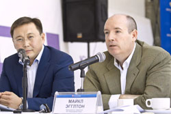 15 июня 2012 года Евразийский Банк провел очередное заседание Пресс–клуба Банка в конно-спортивном комплексе «Алтын Тай», урочище Бутаковка. Спикерами выступили председатель правления Евразийского Банка Майкл Эгглтон и управляющий директор, член правления Банка Нурбек Аязбаев. Присутствующие на мероприятии представители ведущих казахстанских деловых СМИ имели возможность задать спикерам интересующие их вопросы и выслушать экспертное мнение.