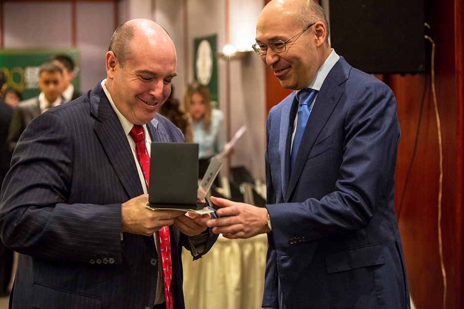 По поручению Главы государства, Председатель Национального Банка РК Кайрат Келимбетов вручил юбилейную медаль, посвященную 20-летию тенге Майклу Эгглтону, Председателю Правления Евразийского Банка.