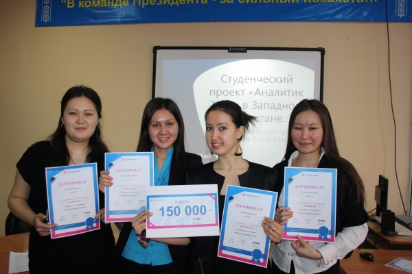 Казахстанские студенты успешно пробуют себя в роли финансистов! Подведены итоги конкурса «Аналитик 2013», проведенного среди студентов и выпускников ведущих ВУЗов Западного Казахстана. Инициатива проведения этого конкурса принадлежит молодым и амбициозным участникам проекта Евразийского Банка Future 25, направленного на подготовку студенческой молодежи в высокопрофессиональных управленцев банковского сектора.