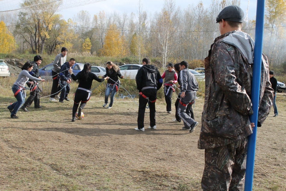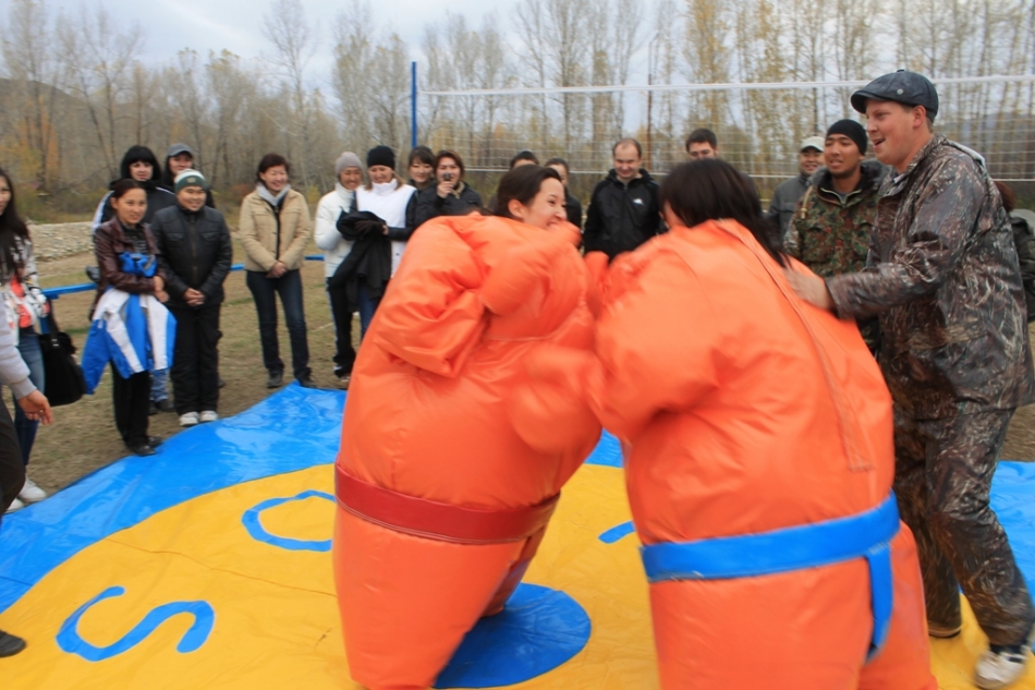 Спортивные состязания – легкие, шуточные конкурсы, без которых не обходится ни один тимбилдинг – также проводились в командном формате: это и борьба сумоистов, и домбайский футбол, и перетягивание каната, и построение геометрических фигур с завязанными глазами.