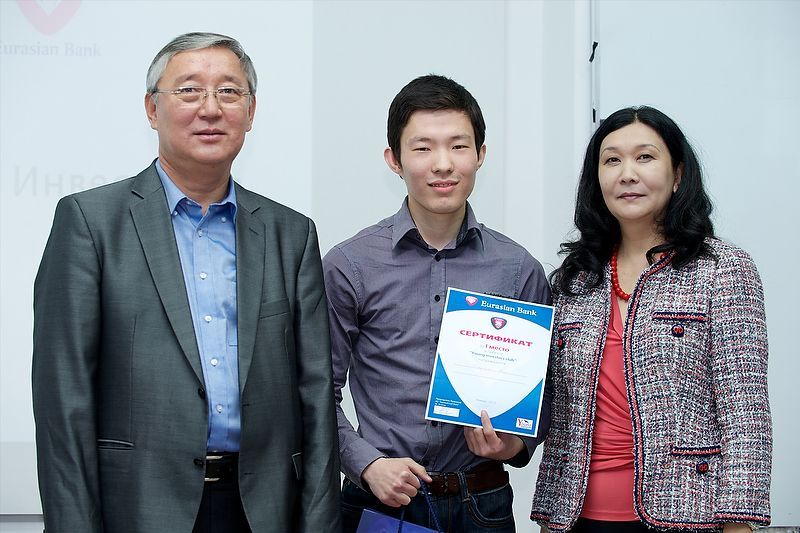 05.06.2013, Алматы — За месяц торгов на бирже алматинский студент Мади Жуматкан заработал свыше трехсот тысяч тенге, став победителем конкурса «Лучший молодой инвестор». Второе и третье место заняли его сокурсники Мухамеджан Жумабаев и Диас Кожатаев, заработавшие порядка ста восьмидесяти тысяч тенге. Конкурс проводился при поддержке Евразийского Банка и Фондовой Биржи Казахстана, на базе Международной Академии Бизнеса. Все участники получили сертификаты, а победители — подборку обучающей литературы об инвестировании в ценные бумаги.