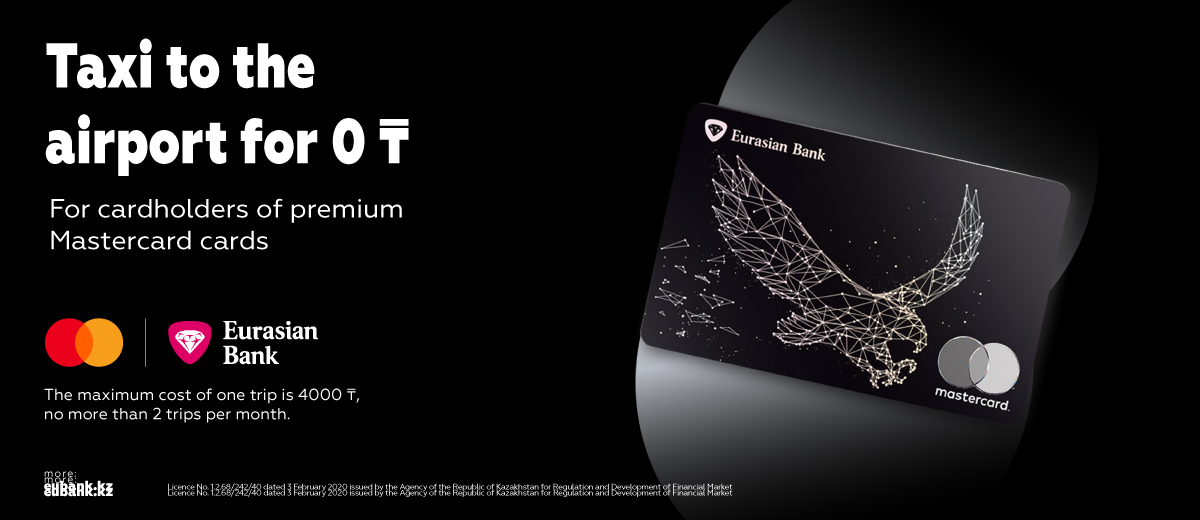 From September 1, 2025, to February 28, 2026, Eurasian Bank customers can receive a discount of up to 4,000 tenge for each trip to/from the airports of Almaty and Astana when paying via the Yandex Go app with premium Mastercard Black Edition and World Elite cards.