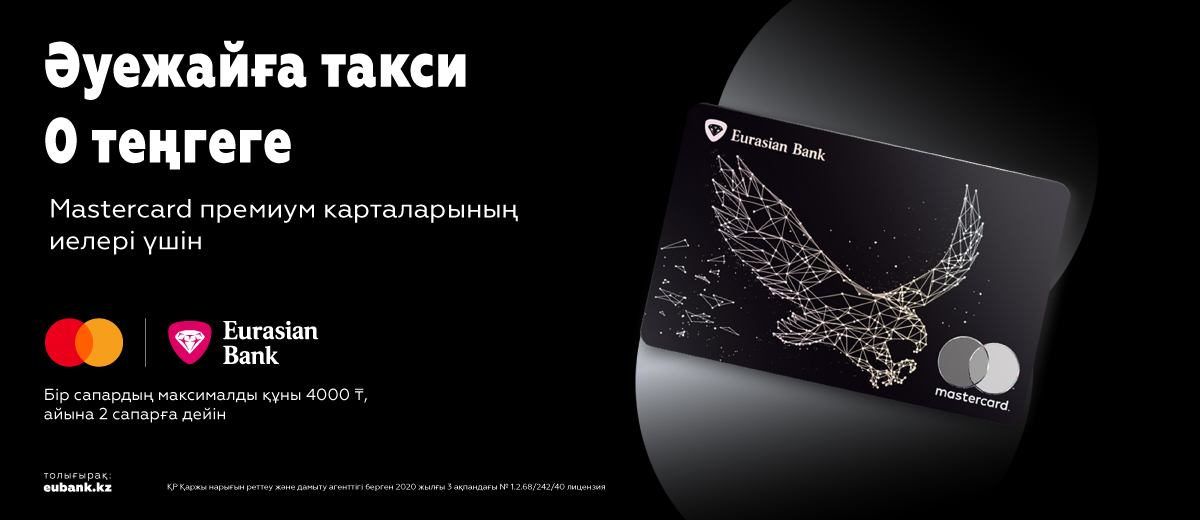2025 жылдың 1 қыркүйегінен 2026 жылдың 28 ақпаңдағы дейін Еуразиялық банк клиенттері Яндекс Go қосымшасы арқылы Mastercard Black Edition мен World Elite премиум карталарымен төлеген кезде Алматы және Астана әуежайларына/әуежайларынан әр жүрген жолдары үшін 4 000 теңгеге дейін жеңілдік ала алады.