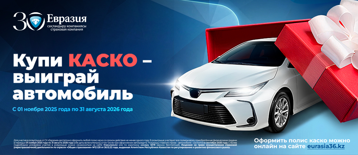 Родственная компания Евразийского банка – Страховая компания «Евразия» продолжает отмечать своё 30-летие грандиозным розыгрышем подарков, главный из которых – новый автомобиль.