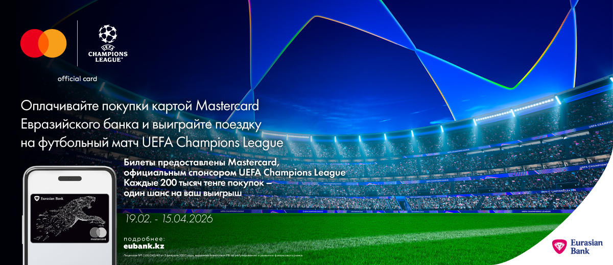 С 19 февраля по 15 апреля 2026 года держатели карт Mastercard Евразийского банка могут принять участие в акции «Матч мечты с Mastercard» и выиграть тур на финал Лиги чемпионов УЕФА в Будапеште.